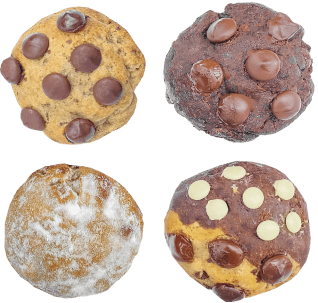 - Mini cookies (45g): pedidos à partir de 2 unidades